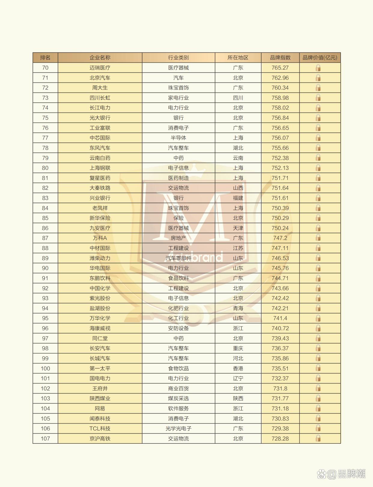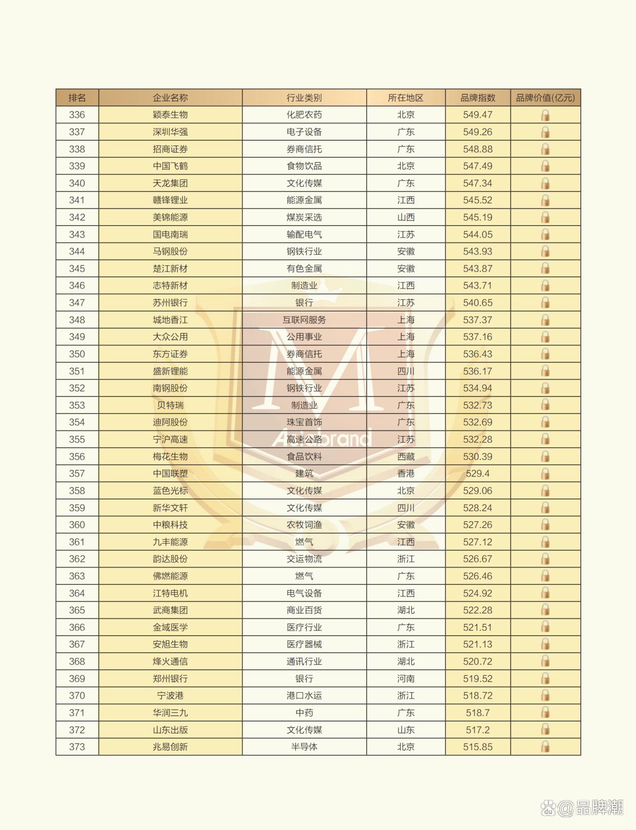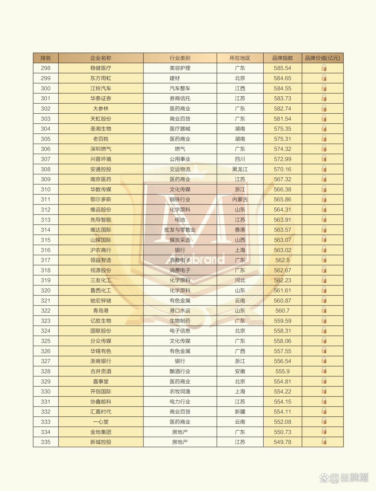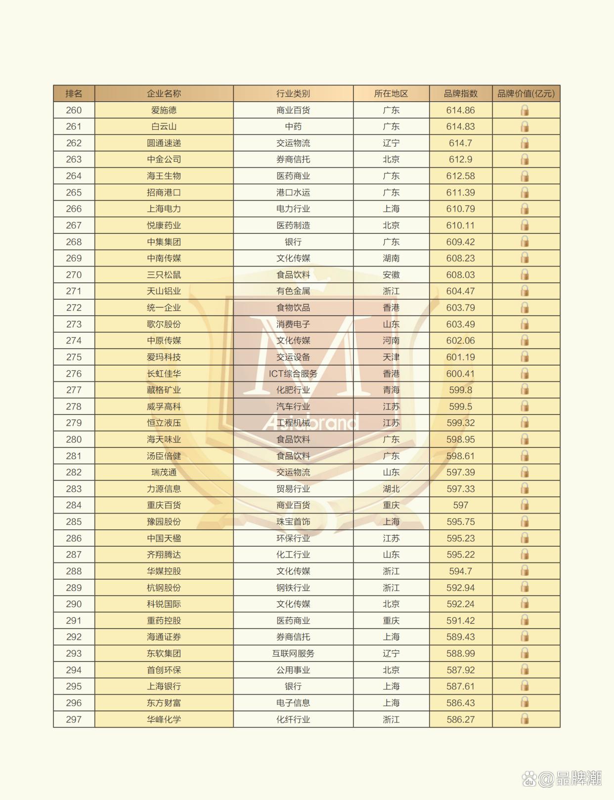 2024中国上市公司品牌500强榜单