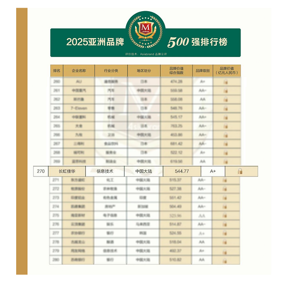 本次盛典,长虹佳华荣登“2025亚洲品牌500强”,排名第270位,较去年提升6位;同时获评“2025中国ICT生态十大影响力品牌”,品牌影响力和生态价值获权威体系强力背书。